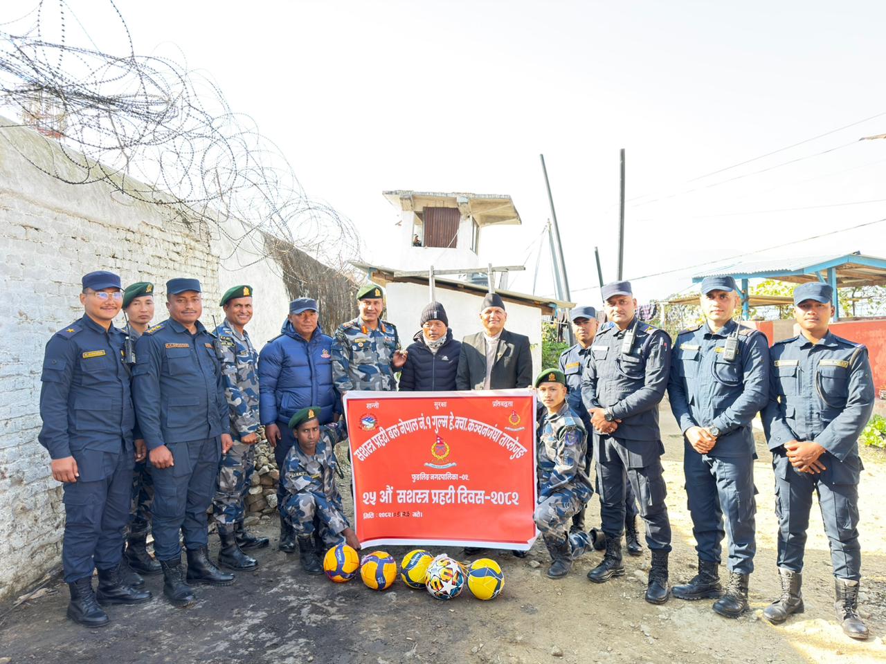 पुस २३, २०८२ ताप्लेजुङ – सशस्त्र प्रहरी वल कञ्चनजङ्घा गुल्मले जिल्ला कारागारका कैदीबन्दीलाई खेल सामग्री प्रदान गरेको छ । २५ औं प्रहरी दिवसको अवसरमा पाँच थान भलिबल, नेट लगायतका सामग्री प्रदान गरेको हो । कारागारमा भलिबल खेल्ने ठाउँ रहेको र कैदीबन्दीलाई शारीरिक व्यायाम हुने भए