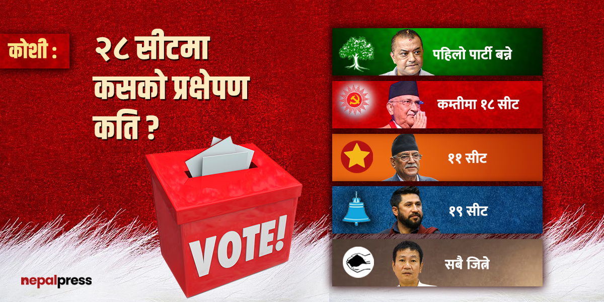 राष्ट्रिय स्वतन्त्र पार्टी कोशीका महामन्त्री लालविक्रम थापाले १९ सीट जित्ने आँकलन गरेको बताए । उनले अधिकांश क्षेत्रमा युवा उम्मेदवार उठाएकाले रास्वपाका पक्षमा परिणाम आउने दाबी गरे ।